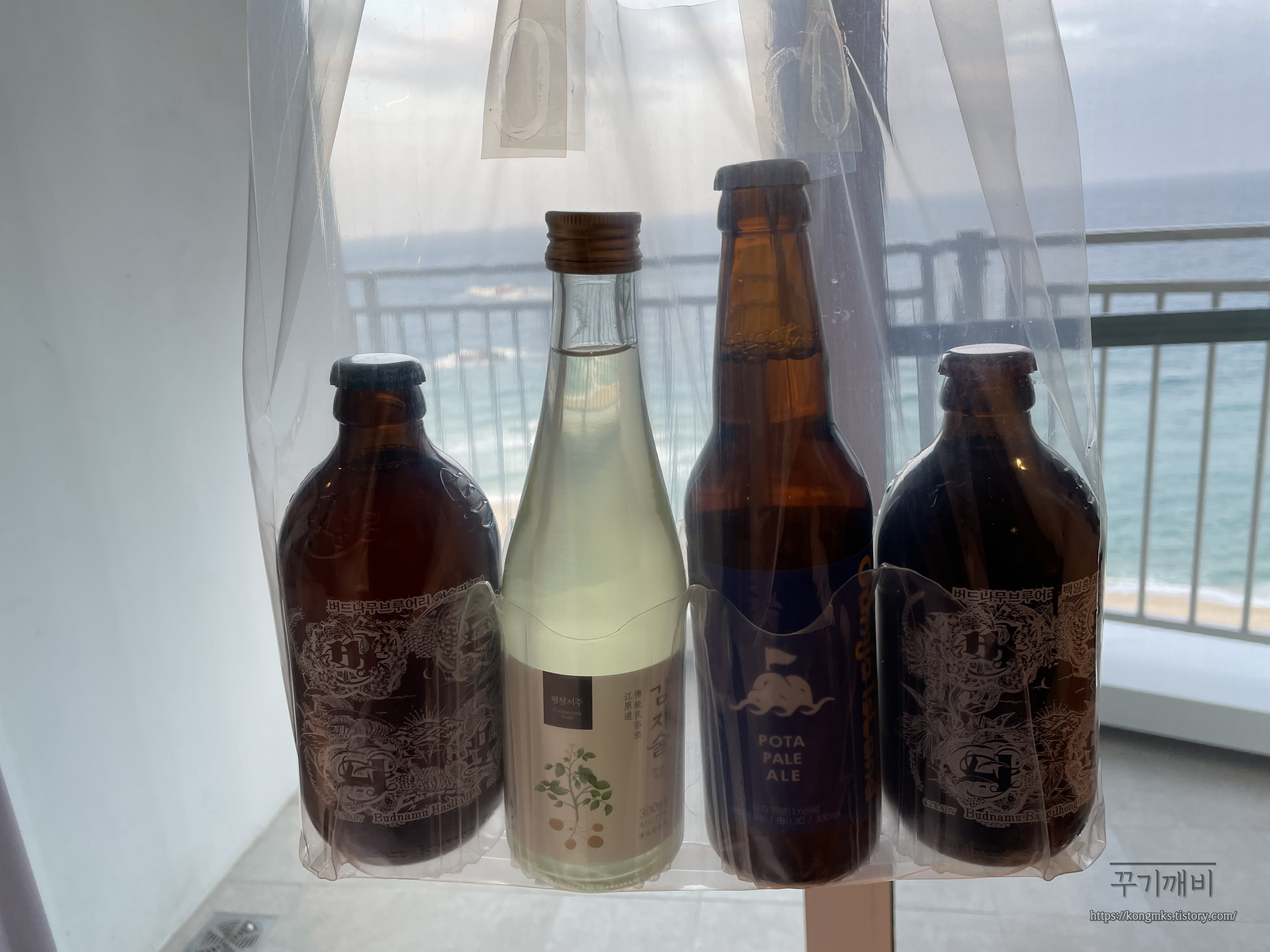맥주 3병과 감자주를 샀다