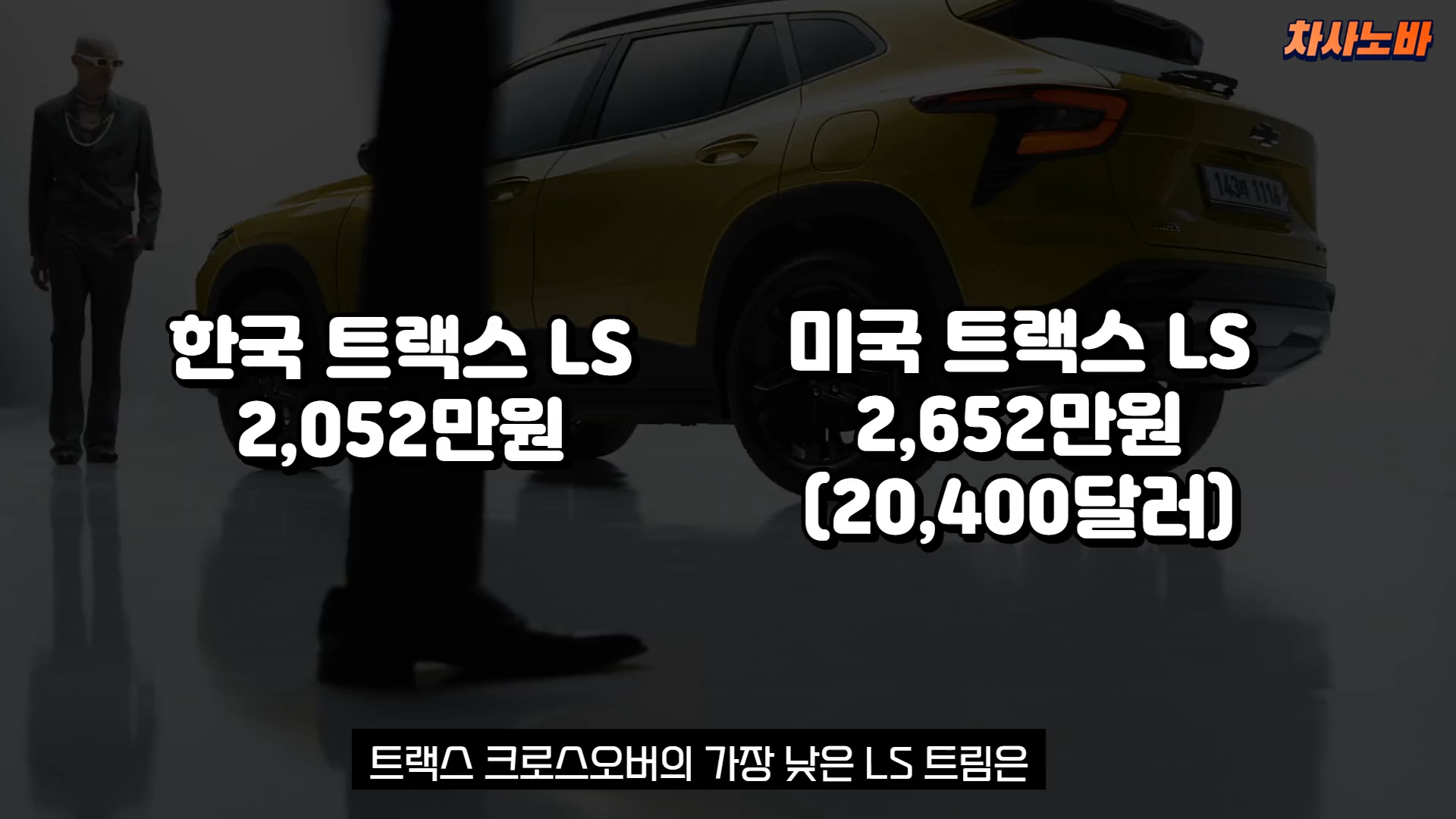 트랙스 크로스오버의 최저 LS 트림은 미국보다 약 700만원 저렴하다.
