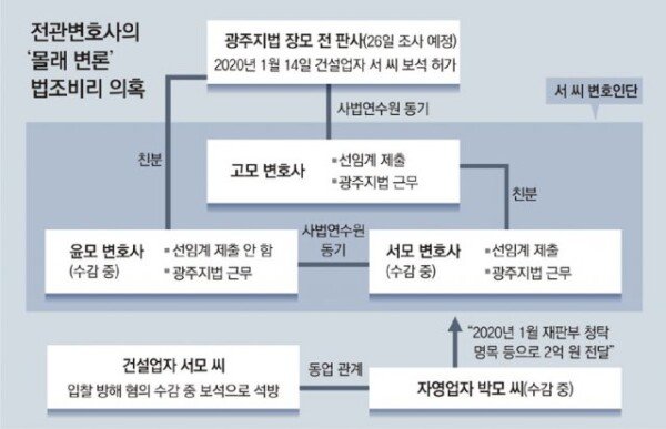 광주지검 반부패수사부(부장 박진성)는 서 전 판사와 윤 전 판사를 구속해 보석금 5000만원과 상속비 1억5000만원을 요구했다. 동아일보는 23일 ‘변호사법’ 위반 혐의로 법원에 피소됐다.