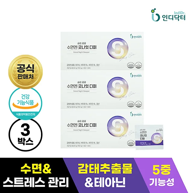 인디닥터에서 만든 슬립클 수면에는 굿나잇디퍼. 인디닥터는 바이오기업인 ㈜BL에서 새롭게 출시한 건강식품 브랜드.㈜BL은 면역증진 기능성 원료인 ‘폴리감마글루탐산칼륨’의 독자 기술을 국내 유일 보유한 면역연구개발 20년 역사의 바이오 R&D 기업이다.