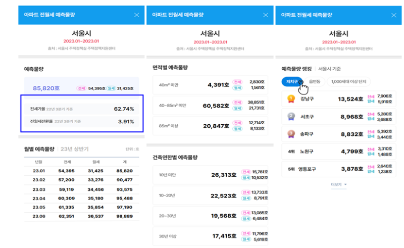특히 새롭게 통합되는 전세 상담, 신규로 운영되는 전문 법률 지원 서비스를 위해 서울시 관련 부서 담당 공무원을 포함하여 공인중개사, 변호사, 법무사 등 전문 인력을 적극 지원할 계획입니다. ② 악성 임대인에 대한 선제적 대응전세 사기 주범인 악성 임대인을 막기 위해서”전세 사기 의혹 주택”을 모니터링하는 관계 부처 협업으로 피해 예방을 최소화할 예정입니다. 전세 사기 의혹 주택 모니터링 및 단속 올해 상반기에는 서울시 토지 관리과·민생 사법 경찰단·자치구 합동에서 “전세 사기 가담 불법 중개 행위”현장 점검 및 단속을 집중적으로 진행하는 건축물 소유자 정보, 주택 매매 및 전세 거래 정보 등을 종합 분석하는 전세 사기가 의심될 경우 경찰청과 정보를 공유하는 수사에 협력할 계획입니다. 신축 빌라 분양 예정 가격 신고 제도의 건 통 전세 문제가 자주 발생한 신축 빌라는 임차인이 사전에 예정 매매 가격을 확인하고 계약할 수 있도록”건축 법”상 허가 대상인 29가구 이하인 공동 주택도 사용 승인 시에 “분양 예정 가격”을 신고하도록 개정을 건의하고 주택 임대 관리 업체가 임차인과 불법 이중 계약을 하거나 의도적으로 계약 정보를 제공하지 않는 사례를 막기 위해서 임대 관리 업체 책임 강화를 위한 법령 개정을 추진하고 악성 임대인이 나오지 않도록 대응합니다. ③ 잠재적인 깡통 전세에 피해 예방서울주거포털에서 제공하는 월세전환율(2022년 3분기)민간 부동산 앱에 ‘전세보증가율’ 제보 마지막으로 전세계약 전 깡통 전세 가능성을 확인하도록 기존에 ‘서울주거포털’ 웹페이지에서 공개한 ‘자치구·주택유형별 전세가율’ 정보를 1월부터는 다방, R114, 부동산플래닛 등 민간 부동산 포털 앱에서도 제공합니다.[부동산플래닛] 전월세 제보 화면 예시 그리고 서울 전역 공인중개사 사무실에 전세보증가율 자료를 비치하고 시내 소재 대학과도 연계하여 대학 신입생 등 사회초년생을 위한 부동산 계약 관련 특강 프로그램도 운영할 계획입니다.앞으로도 서울시는 전 재산에 가까운 전세보증금을 돌려받지 못해 어려움을 겪고 있는 청년들을 위해 다양한 대책을 마련하고 캔 전세로 인한 전세사기 피해자를 실질적으로 도울 방안을 모색하는 한편 전세사기를 예방하는 데 노력하겠습니다.앞으로도 서울시는 전 재산에 가까운 전세보증금을 돌려받지 못해 어려움을 겪고 있는 청년들을 위해 다양한 대책을 마련하고 캔 전세로 인한 전세사기 피해자를 실질적으로 도울 방안을 모색하는 한편 전세사기를 예방하는 데 노력하겠습니다.앞으로도 서울시는 전 재산에 가까운 전세보증금을 돌려받지 못해 어려움을 겪고 있는 청년들을 위해 다양한 대책을 마련하고 캔 전세로 인한 전세사기 피해자를 실질적으로 도울 방안을 모색하는 한편 전세사기를 예방하는 데 노력하겠습니다.앞으로도 서울시는 전 재산에 가까운 전세보증금을 돌려받지 못해 어려움을 겪고 있는 청년들을 위해 다양한 대책을 마련하고 캔 전세로 인한 전세사기 피해자를 실질적으로 도울 방안을 모색하는 한편 전세사기를 예방하는 데 노력하겠습니다.앞으로도 서울시는 전 재산에 가까운 전세보증금을 돌려받지 못해 어려움을 겪고 있는 청년들을 위해 다양한 대책을 마련하고 캔 전세로 인한 전세사기 피해자를 실질적으로 도울 방안을 모색하는 한편 전세사기를 예방하는 데 노력하겠습니다.