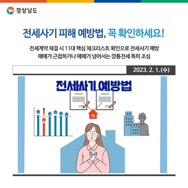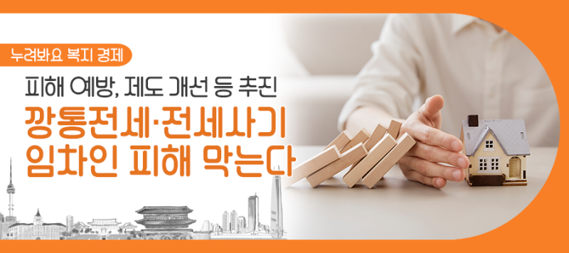 최근 주택 매매가보다 전셋값이 비싼 ‘깡통전세’ 문제와 함께 계약정보가 부족한 임차인에게 불법적인 방법으로 전세사기를 벌여 전세보증금을 돌려받지 못하는 피해 사례가 갈수록 늘고 있습니다.서울시는 전세 사기 피해에 놓인 주거 약자를 돕기 위해 ‘깡통 전세 피해 지원 및 예방 대책’을 가동합니다.자세한 내용 전달드릴게요!