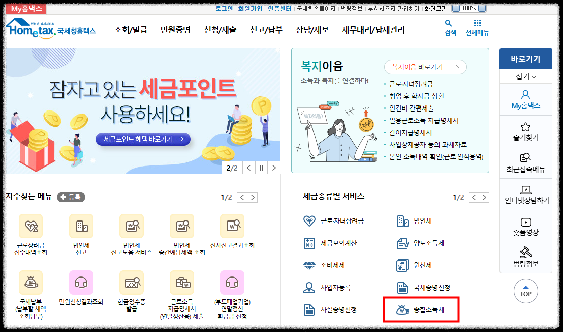 홈텍스 홈페이지 종합소득세신고
