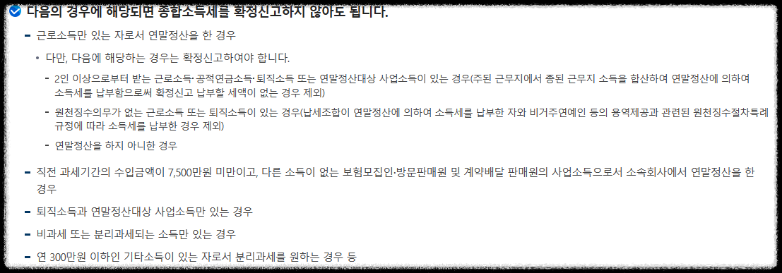 ▣ 종합소득세 신고대상에서 제외