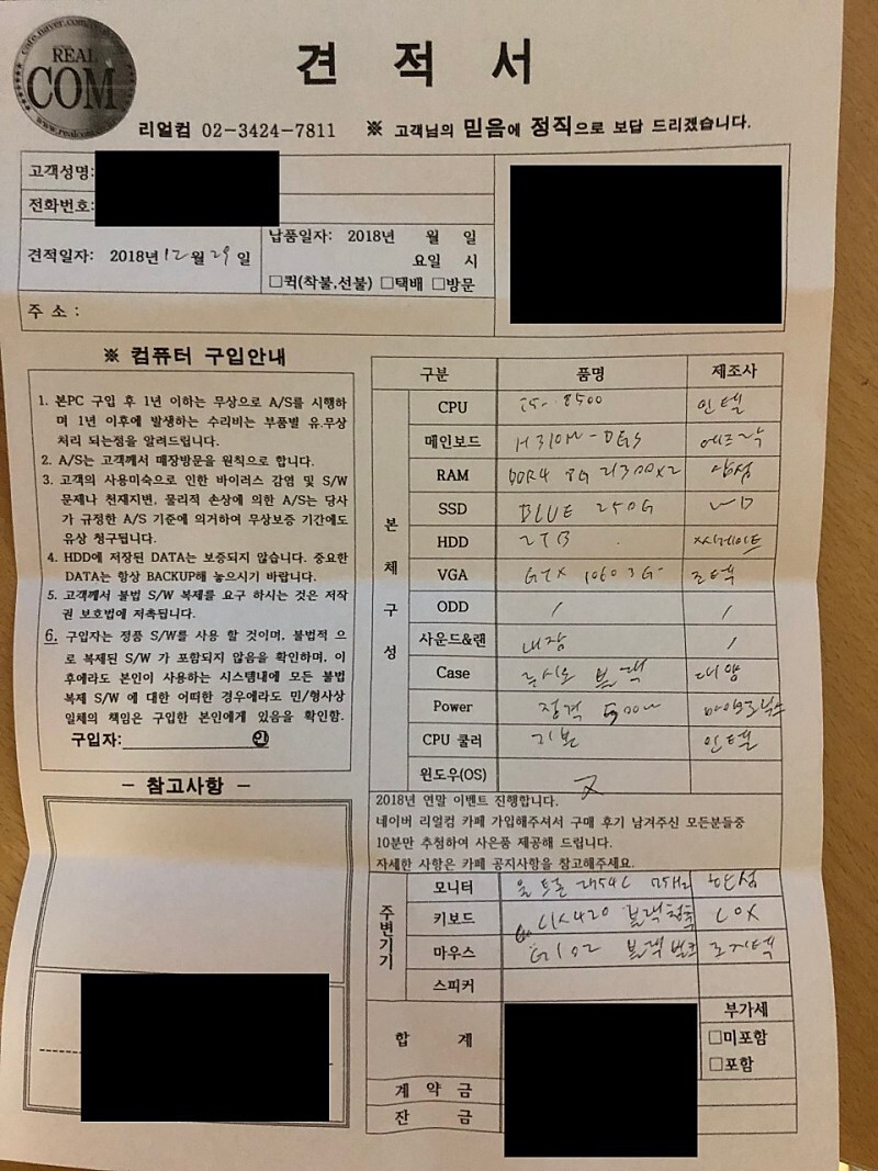 강변 테크노마트 조립컴퓨터 리얼컴 컴… : 네이버 카페